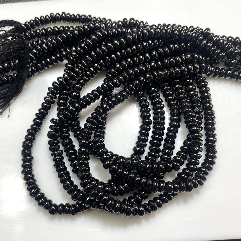 Cuentas de forma de rondelle lisas de espinela negra, cuentas al por mayor de espinela negra Lisa natural