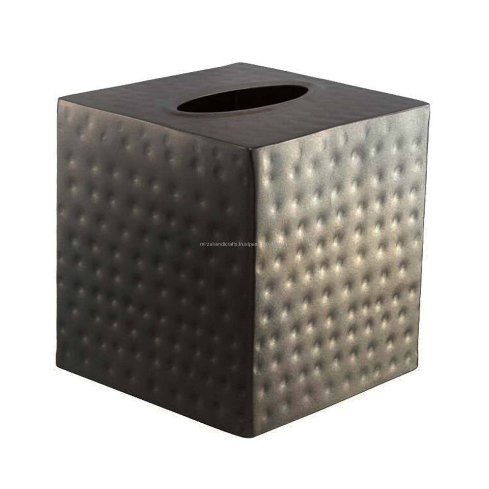 Caja de pañuelos de Metal de diseño martillado, caja de papel moderna creativa para su baño, cocina, oficina y dormitorio, forma cuadrada negra