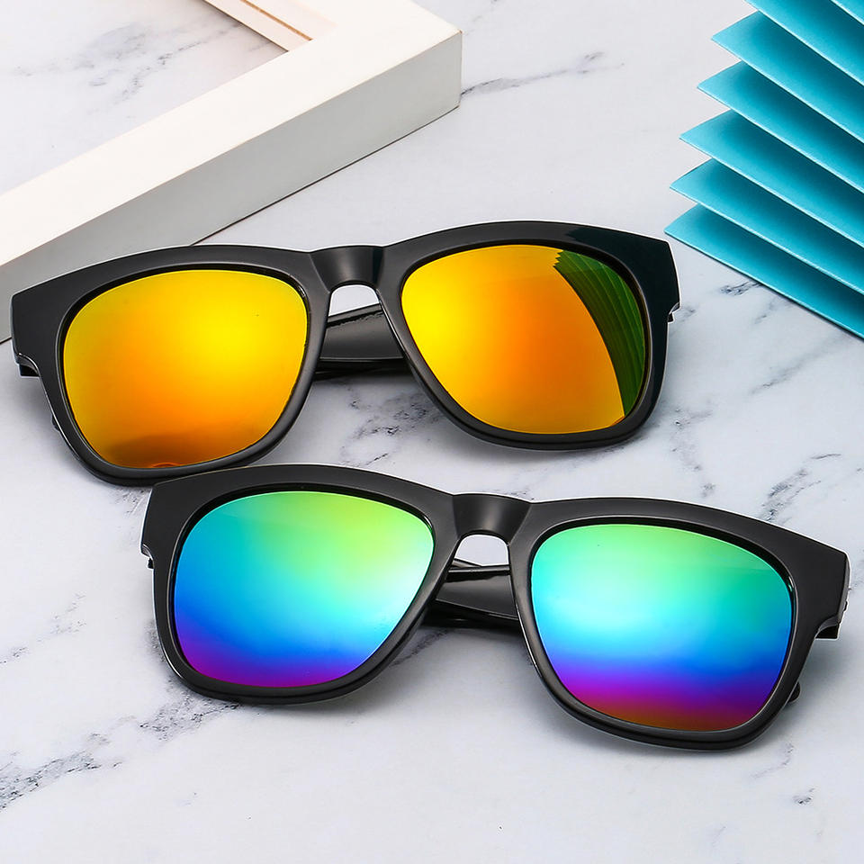 Gafas de Sol Cuadradas Negras con Lentes de Espejo Multicolor, Protección UV, Gafas Modernas con Protección UV