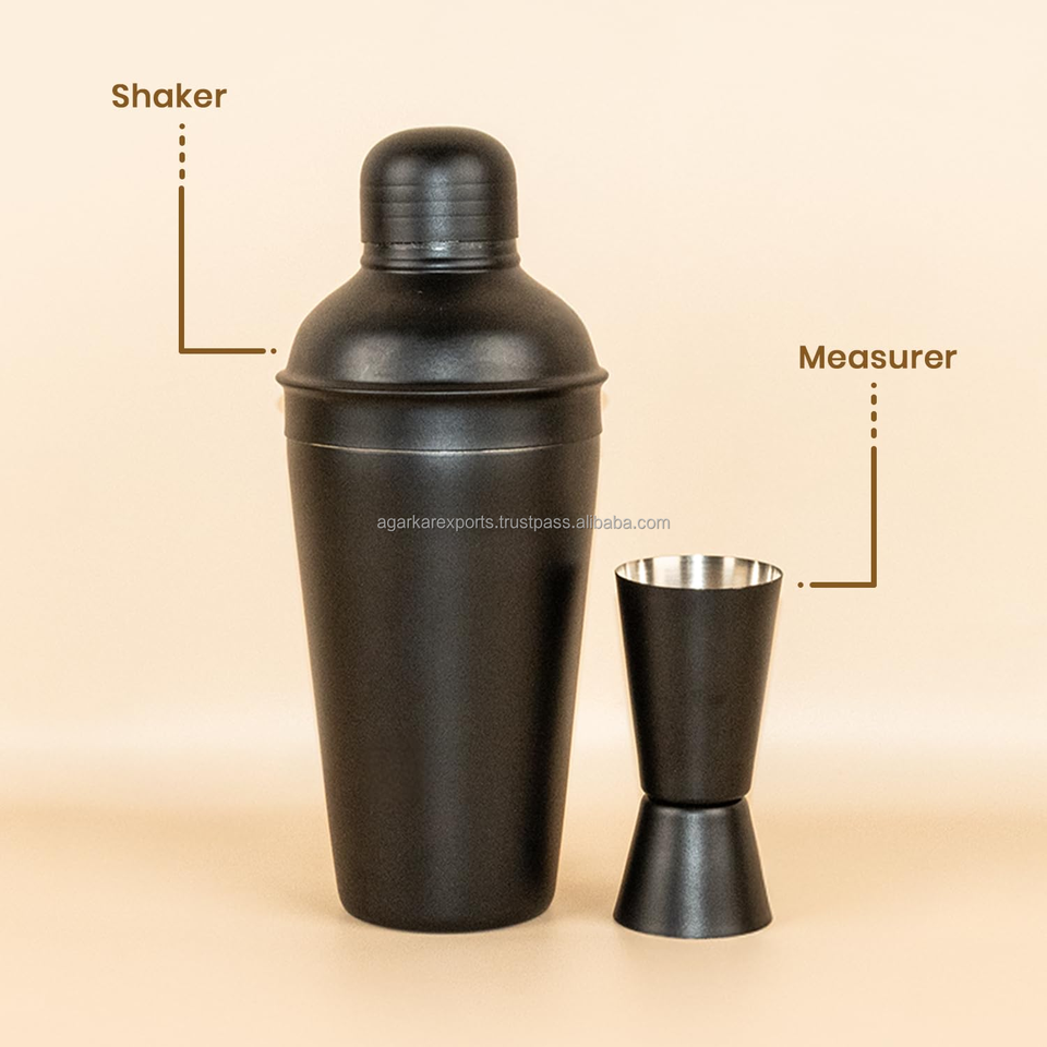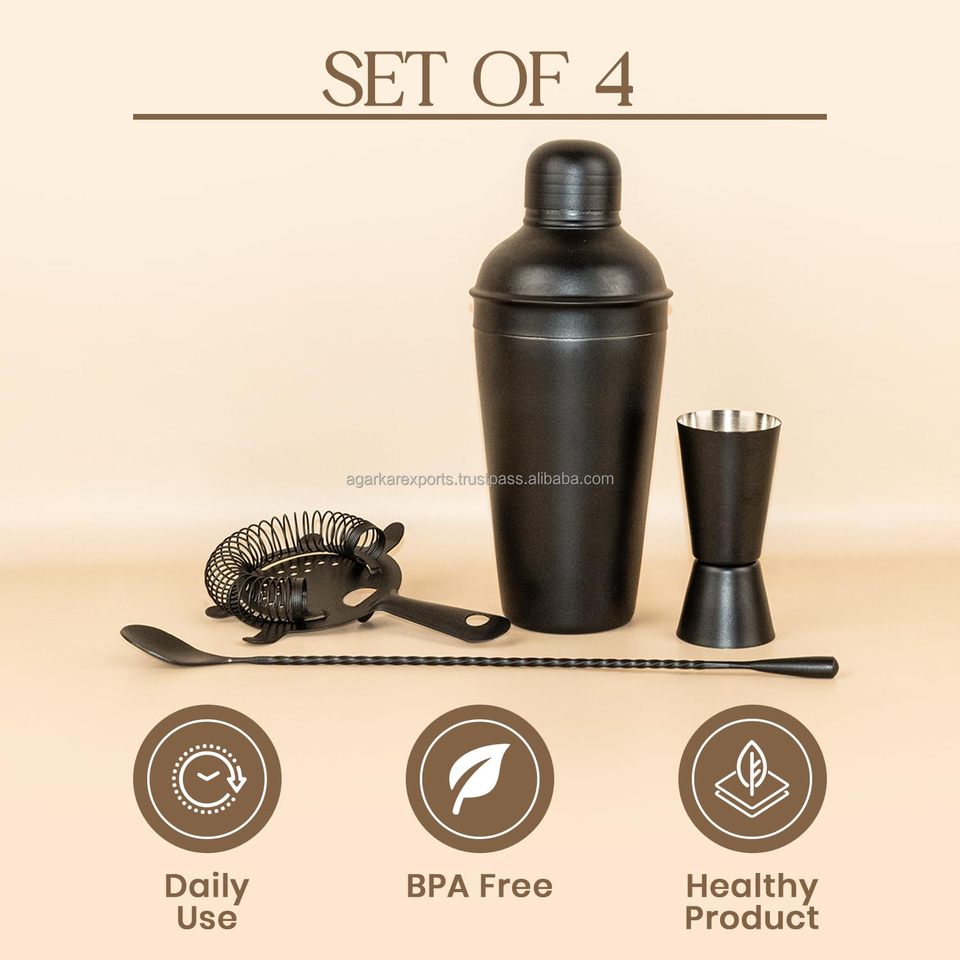 Juego de Coctelería de Acero Inoxidable Negro de 4 Piezas, Coctelera de 750 ml, Jigger, Cuchara, Colador para Bar en Casa y Fiestas