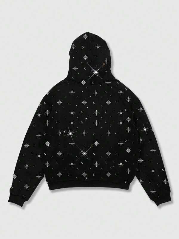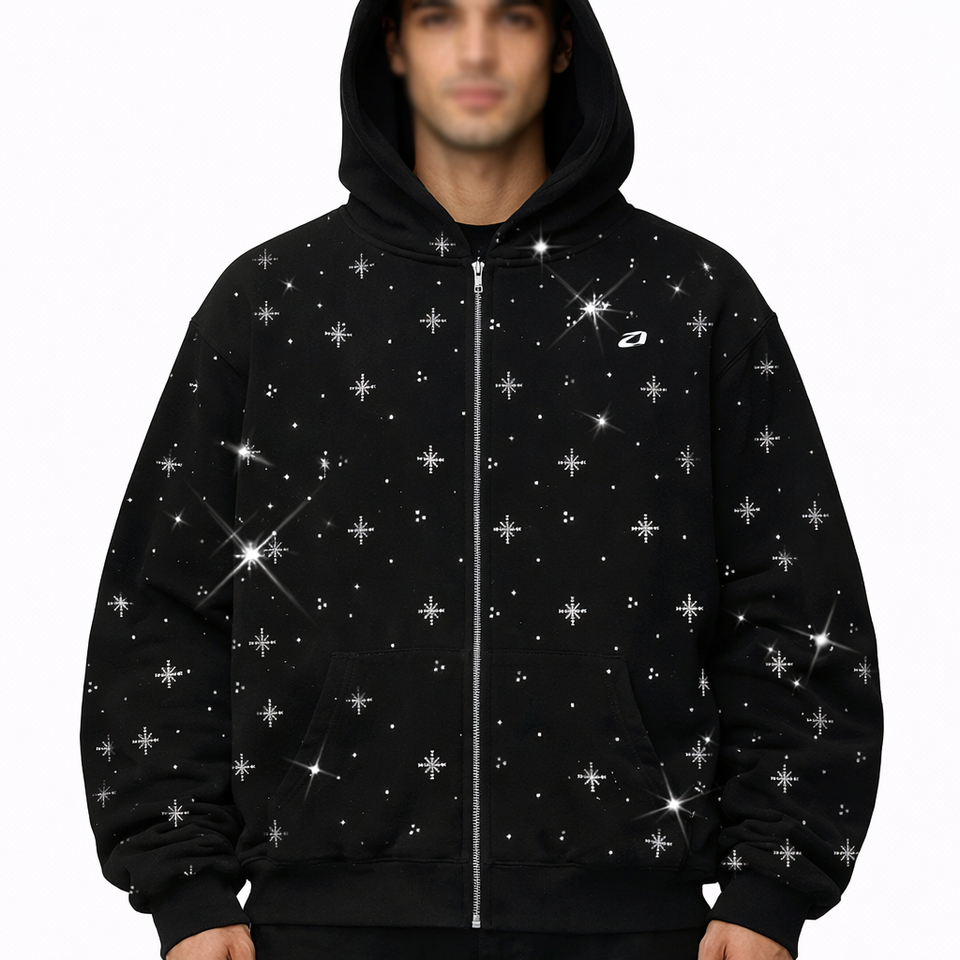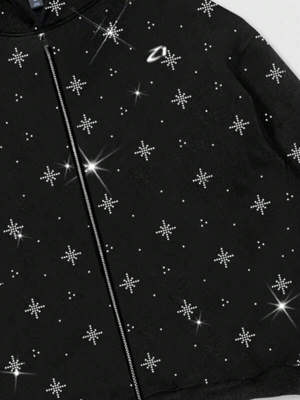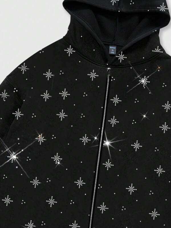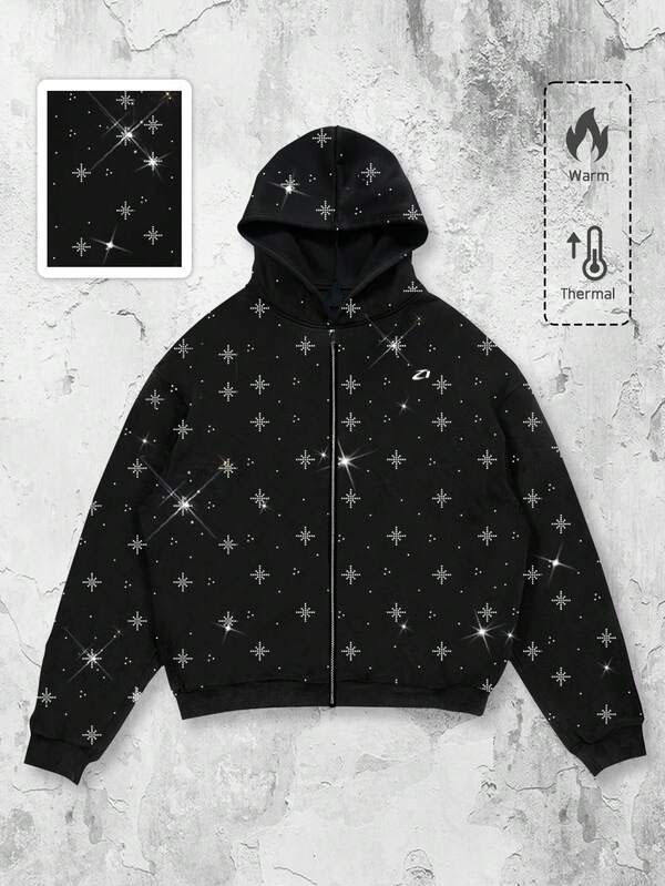 Sudadera con capucha de algodón polar extragrande con cremallera para hombre, con pedrería de estrella negra, estilo urbano, peso pesado, transpirable, para invierno, OEM, marca privada