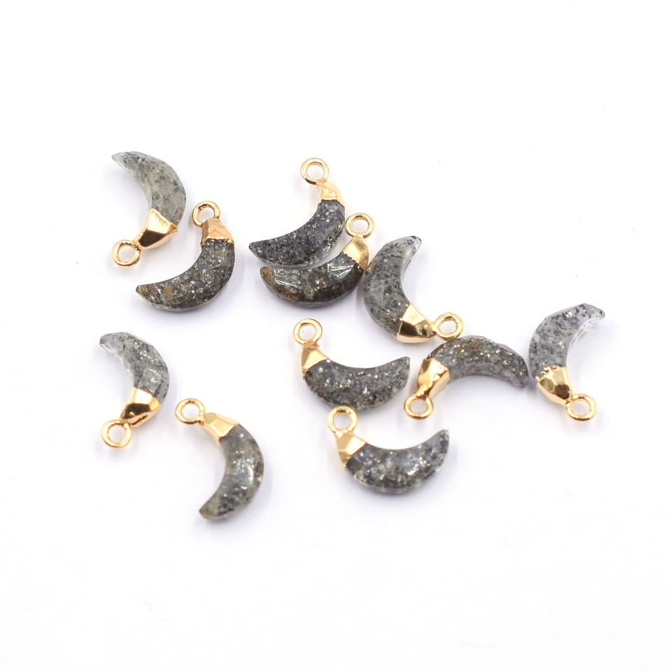 Nombre del Producto:Colgante de piedra solar negra de 11 a 13 mm con forma de luna y baño de oro