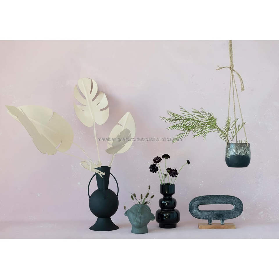 Nombre del producto:Metal negro textura recubierto 4 asas florero