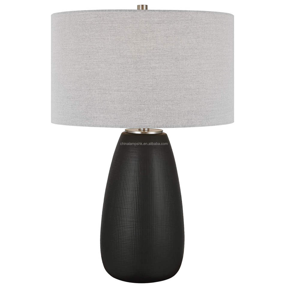 Lámpara de Mesa Moderna Clásica de Cerámica Negra Texturizada | Iluminación Atemporal y Audaz para Hoteles, Oficinas y Espacios Especiales
