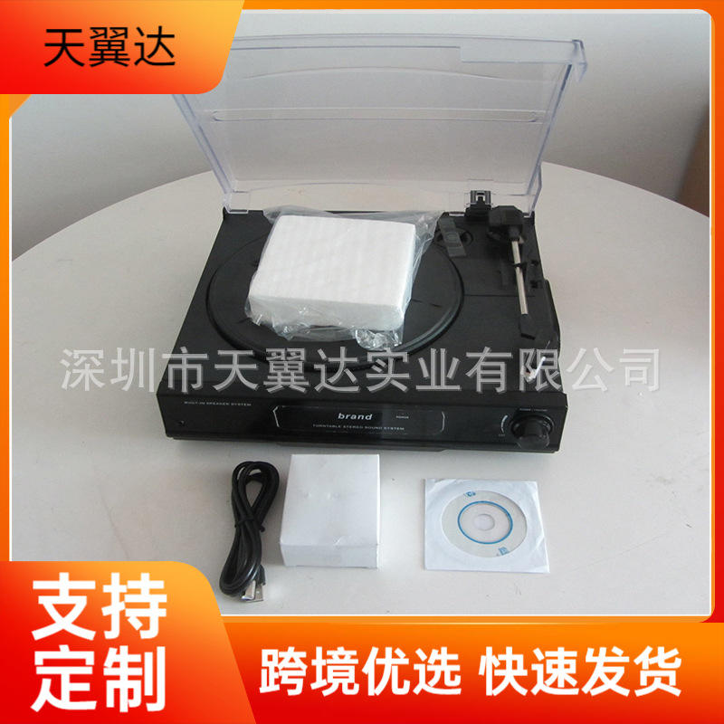 Tocadiscos Negro de Tres Velocidades con Cápsula Ruby, Cubierta Transparente Antipolvo, Interfaz USB y Alimentación por Adaptador de CA