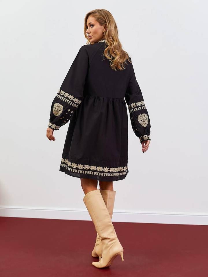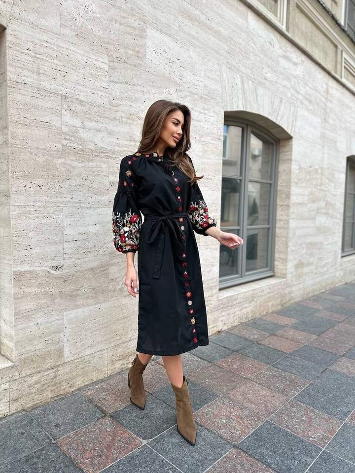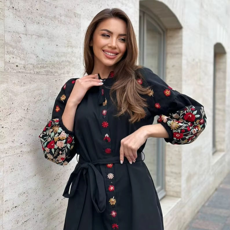 Vestido negro bordado de Ucrania Vishivanka hecho a mano con adorno tradicional Blusa popular para mujer y vestido de Ucrania