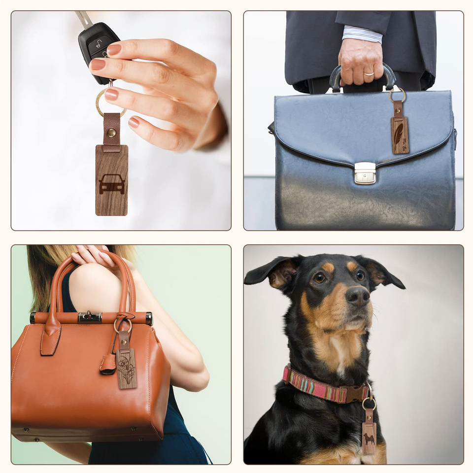 Llavero de Nogal Negro Creativo, Nuevo Llavero de Haya, Colgante de Madera y Cuero con Palabras Grabables