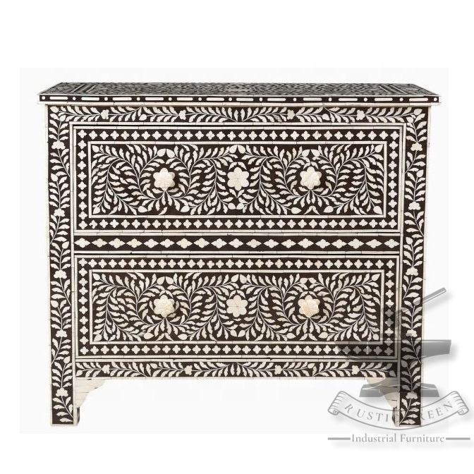 Incrustación de hueso blanco y negro pecho grande de cajones