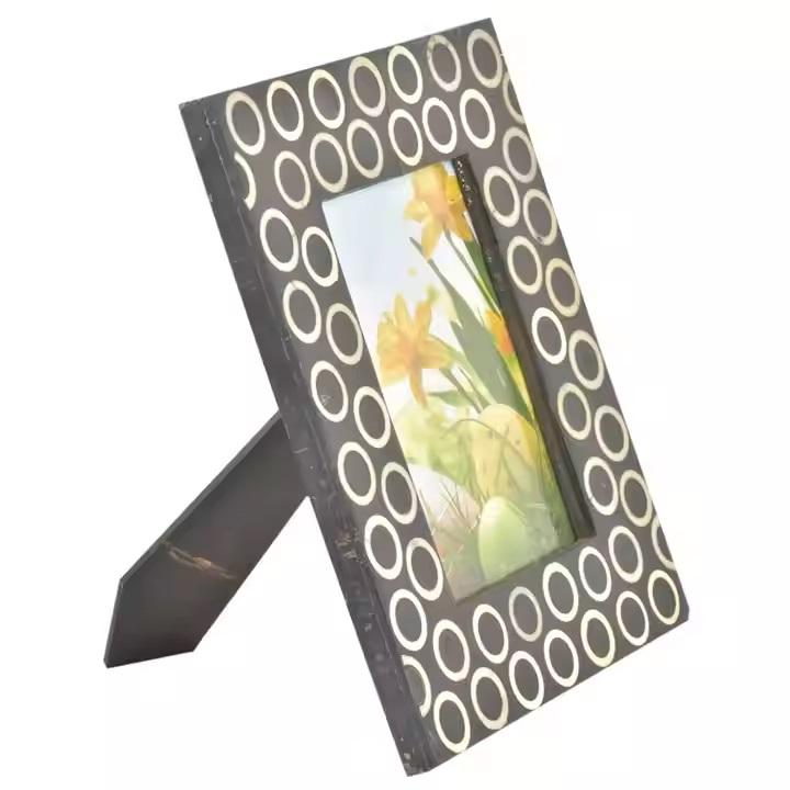 Marco DE FOTOS Rectangular con incrustaciones de resina en blanco y negro con soporte trasero, marco de resina para decoración de pared de alta calidad