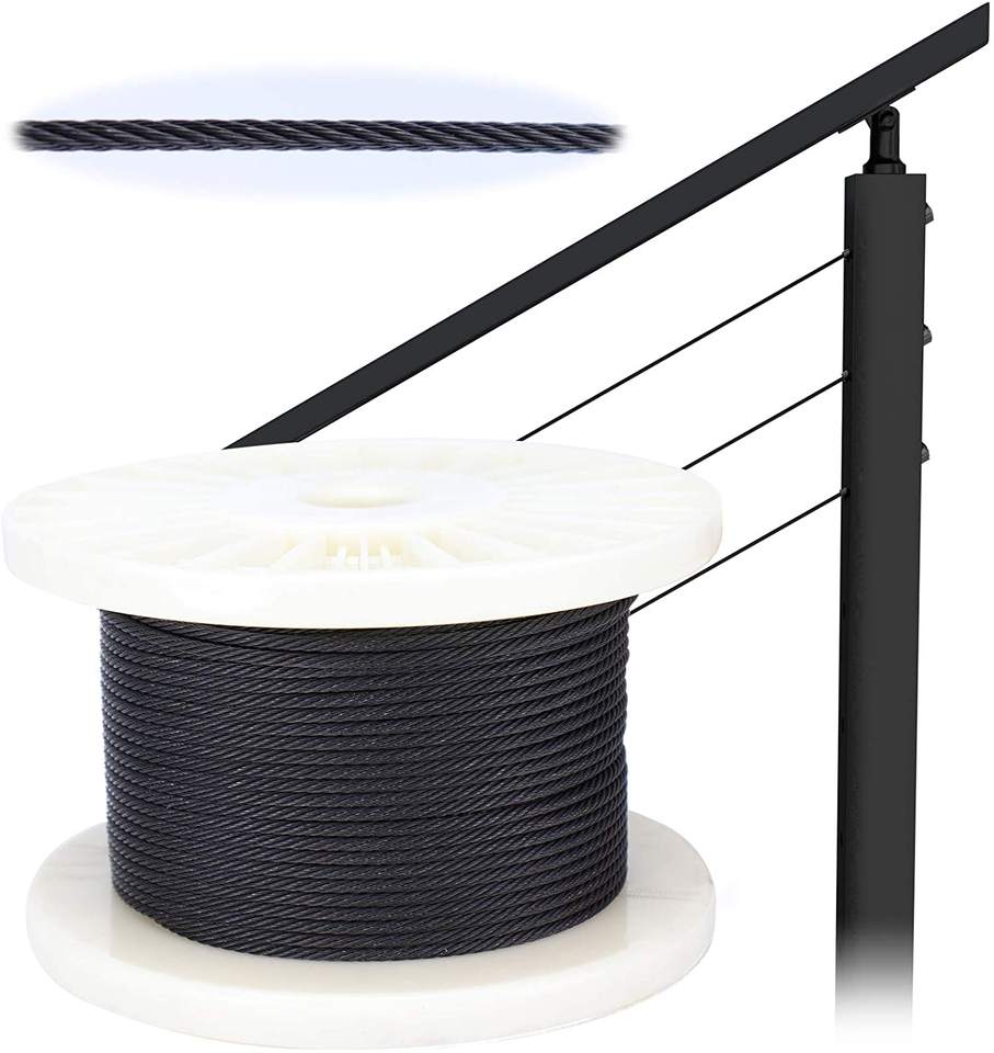 Cable de acero inoxidable T316 para barandilla de escalera interior, cuerda de alambre negra, 1/8, Avión de grado marino, balaustrada artesanal, 7x7.300 pies W