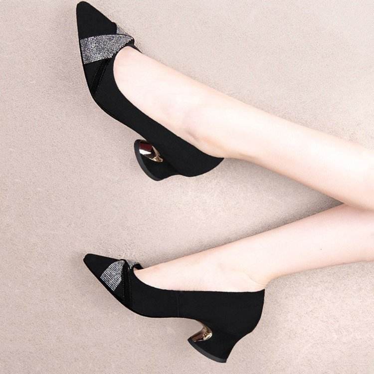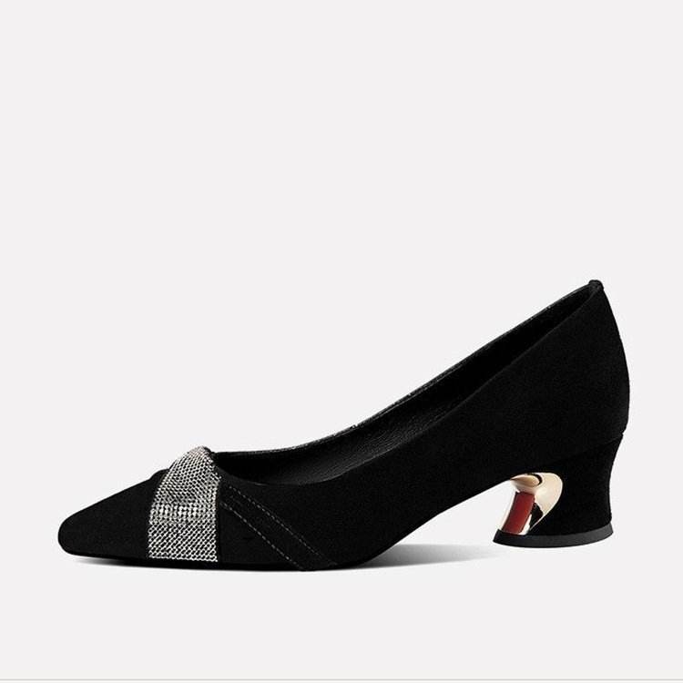 Zapatos de Tacón Bajo para Mujer, Color Negro, con Pedrería en la Puntera, Cómodos para Oficina y Eventos Formales, Tallas 35-40