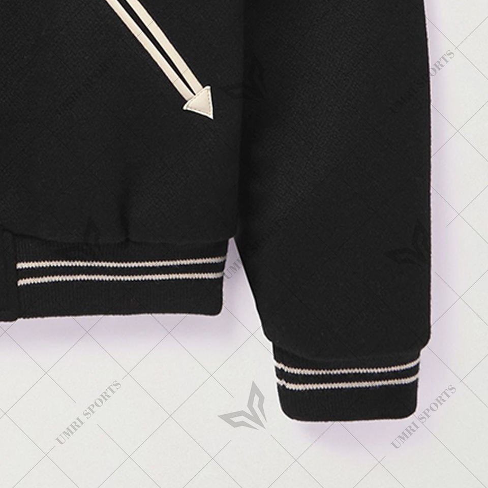 Black and Classic Urban Shield Elegant Vanguard Western Noir Peak Pioneer Essence Chaqueta universitaria negra atemporal