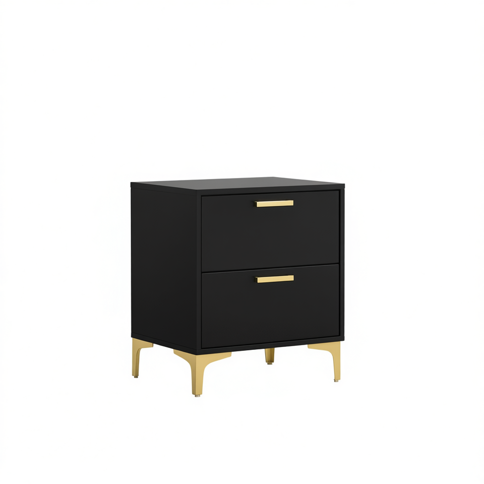 Mesita de noche rectangular negra y dorada de 2 cajones, muebles modernos para dormitorio