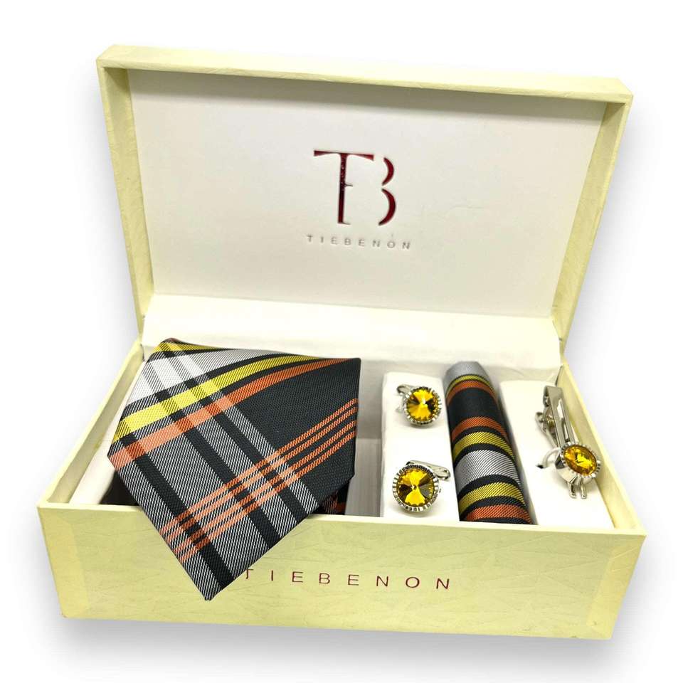 Corbata de poliéster a cuadros negra y naranja para regalo empaquetada en caja de regalo