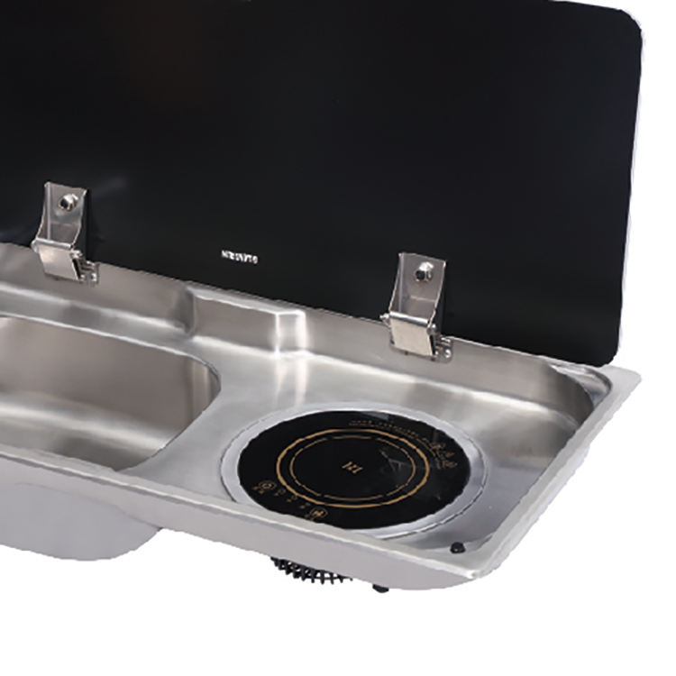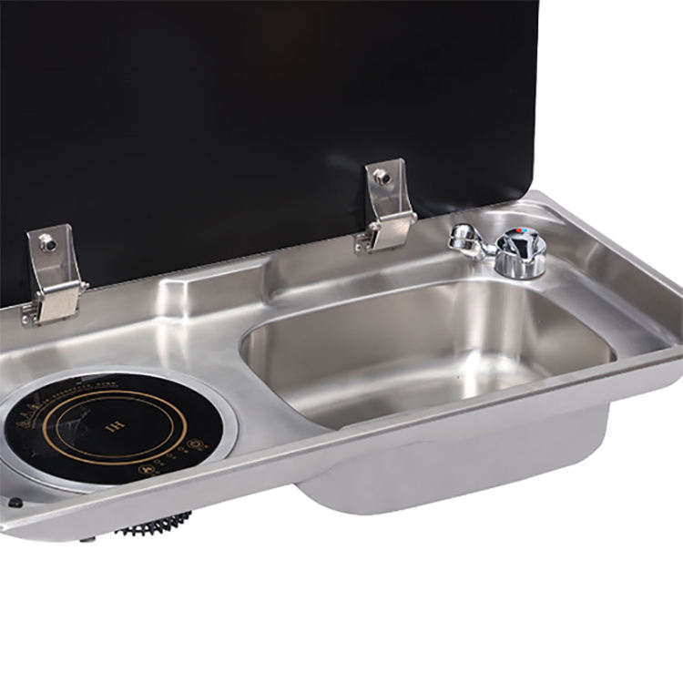Cocina de inducción RV negra y plateada, cubierta de vidrio templado, estufa de caravana, remolque de acero inoxidable, autocaravana, estufa de Caravana