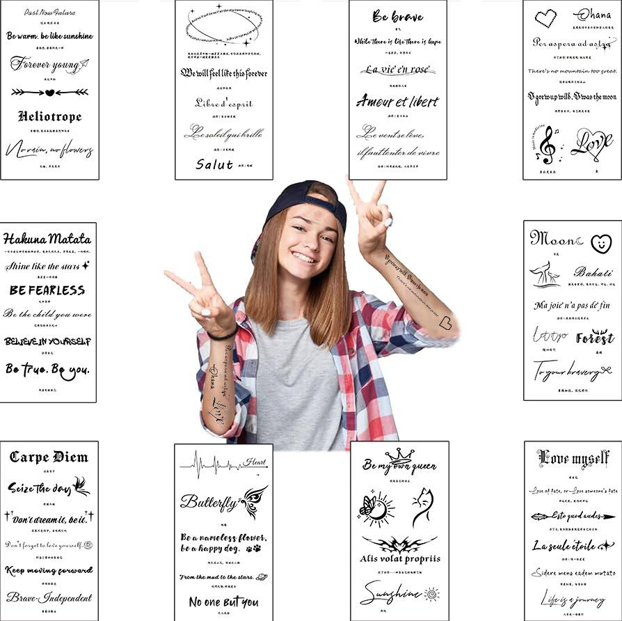 Pegatinas de tatuaje con letras en inglés en blanco y negro, regalos de fiesta impermeables, pegatinas faciales divertidas de gama alta