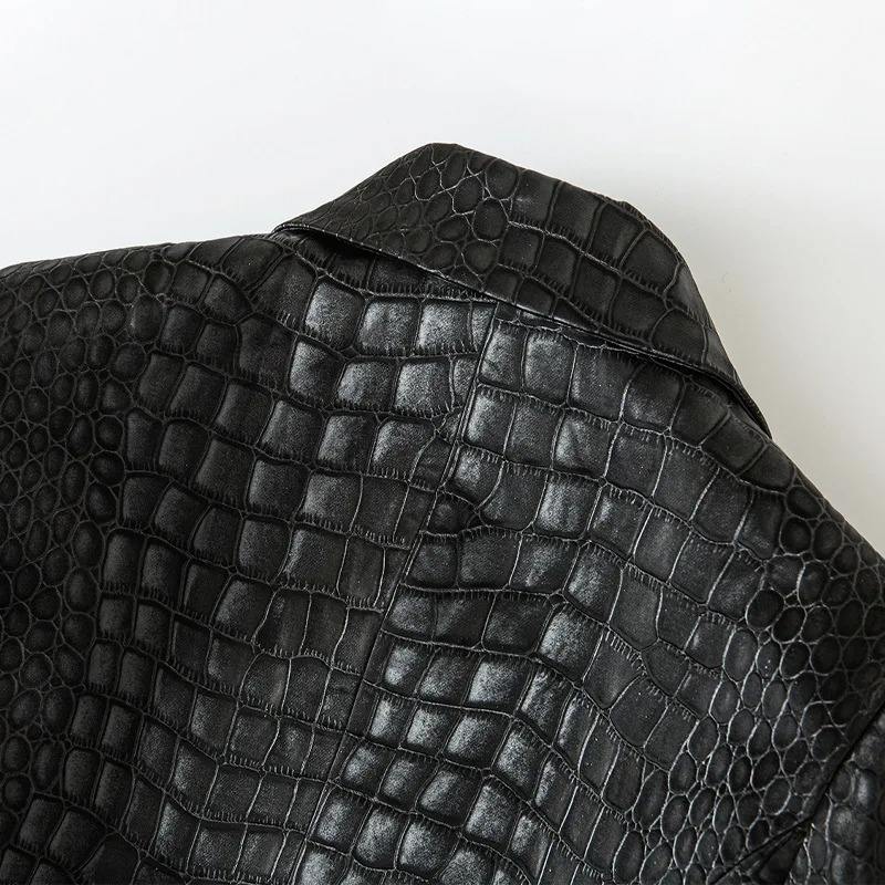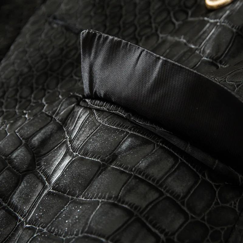 Chaqueta de Cuero con Estampado de Cocodrilo Negro, Textura de Cocodrilo, Diseño Cruzado, Impermeable y Cortavientos, para Moda Unisex de Invierno