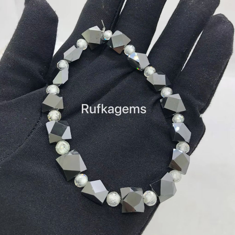 Cuentas de moissanita con forma de fantasía negra y cuentas de diamantes redondas blancas de 5,50 MM hechas a mano para joyería de moda otra pulsera