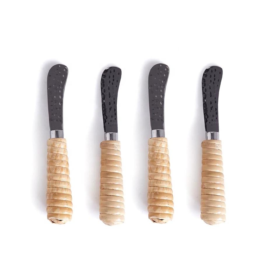 Esparcidor de queso con mango redondo de hilo plateado de acero inoxidable, juego de rebanador de queso bonito, juego de cubiertos con mango giratorio