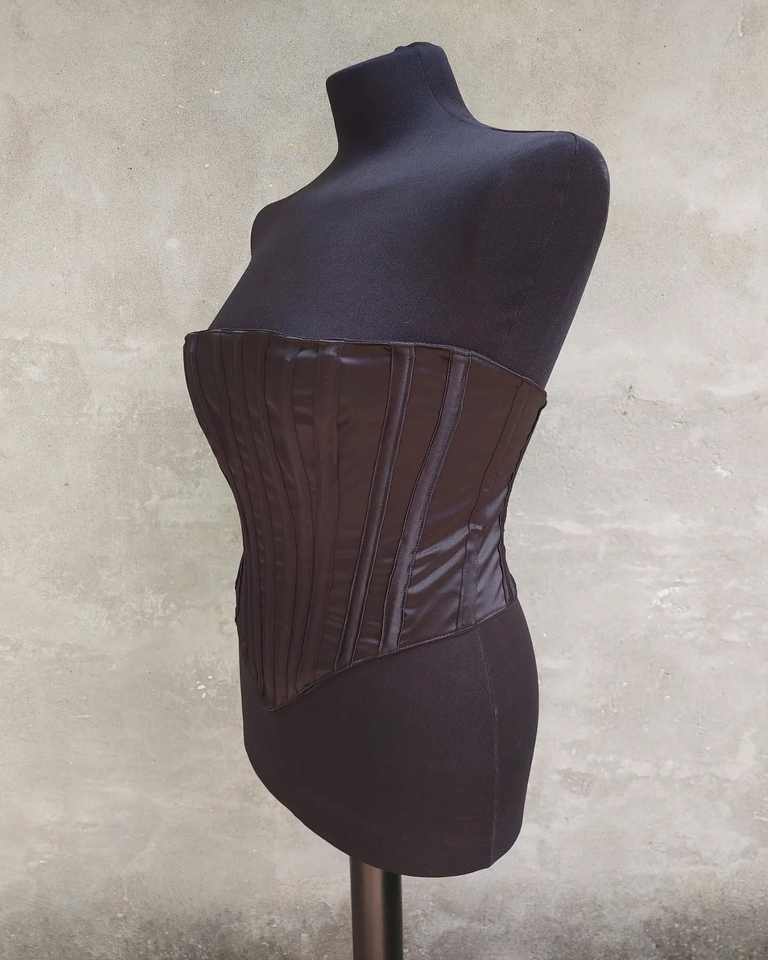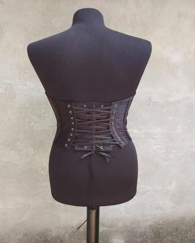 Corsé de satén brillante Negro, corsé hecho a medida, diseño de fábrica, venta al por mayor, servicio OEM y ODM, corsé moldeador de huesos de acero