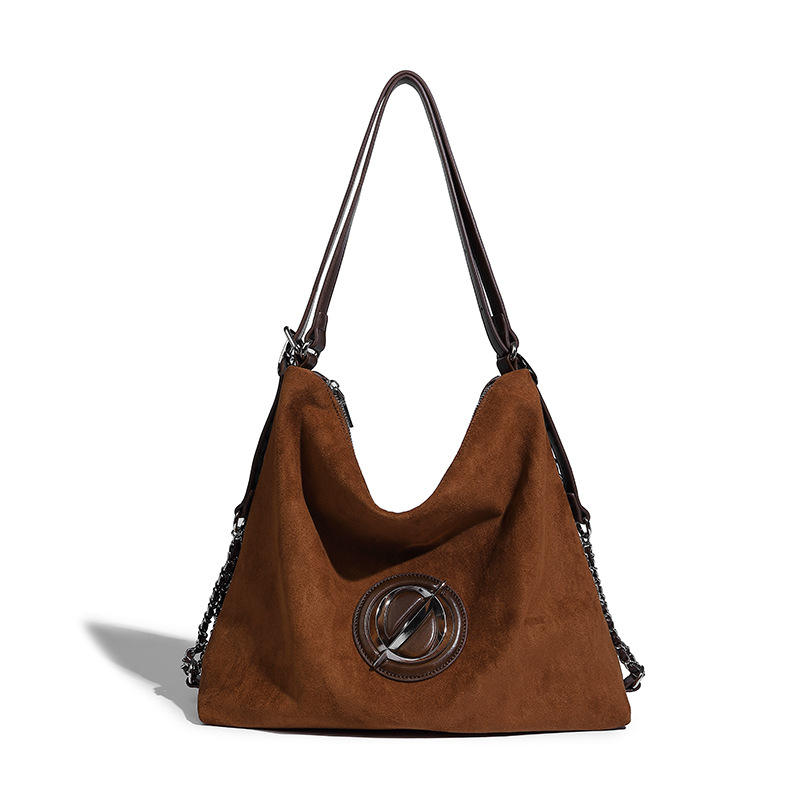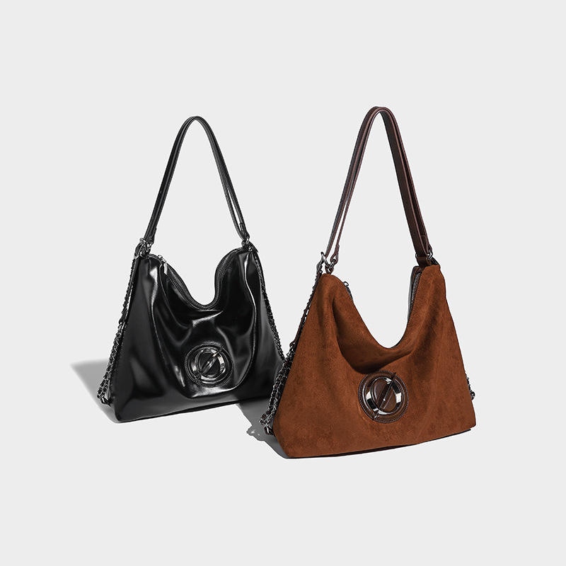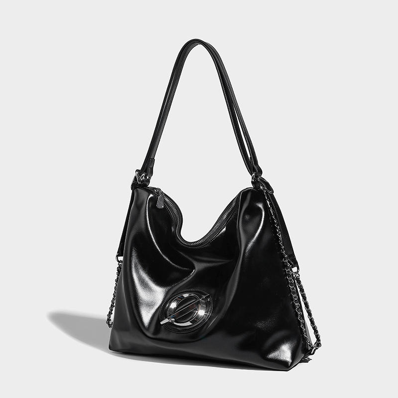 Bolso bandolera de cuero negro brillante Decoración de anillo de metal Diseño curvo de moda