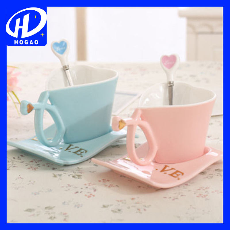 Blanco Azul Rosa En Forma de Corazón Creativo De Cerámica taza de Café Taza de Leche Taza Del Regalo 120 ML