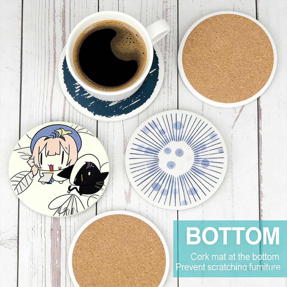 Posavasos de Cerámica Blancos para Sublimación, Redondos y Cuadrados, con Patrón de Mármol, para Hogar y Cafetería