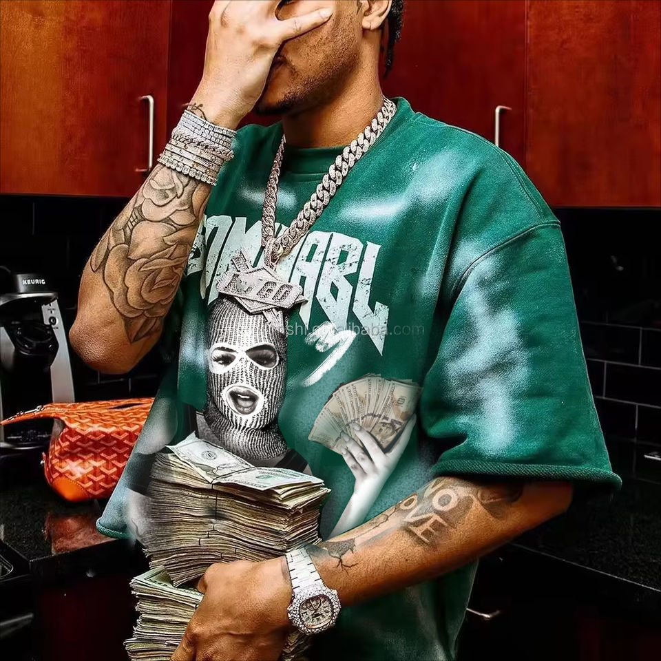Camiseta de ropa de calle de algodón en blanco, camiseta de gran tamaño con hombros caídos, camiseta transpirable con estampado gráfico frontal completo de alta calidad personalizada