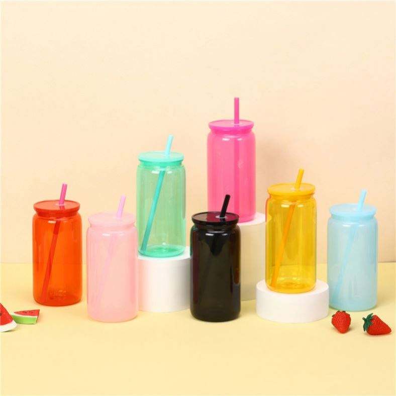 Vaso de plástico de pared simple con aislamiento al vacío de 16oz de color neón en blanco para envolturas UV DTF