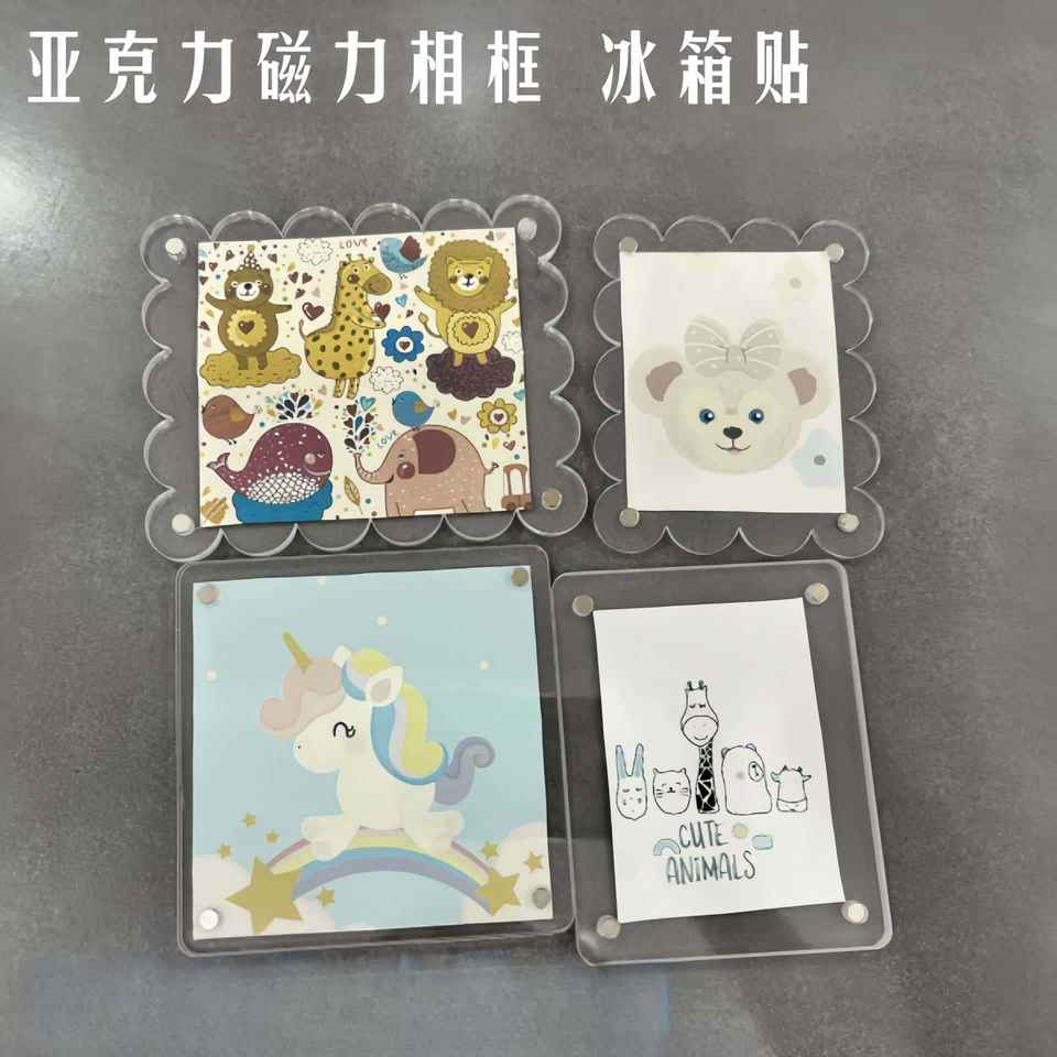 20*25cm ondas en blanco foto insertar refrigerador magnético Marco de imagen estante de exhibición etiqueta transparente acrílico transparente imanes de nevera