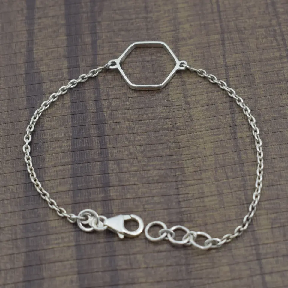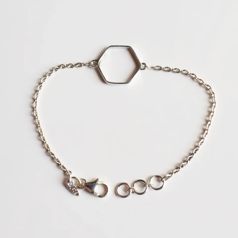 Pulsera de ajuste en blanco Collet 5x5 MM a 30x30 MM Forma hexagonal Bisel de piedras preciosas Copa Collet en blanco Pulsera 7 "Pulgadas 925 Cadena de plata