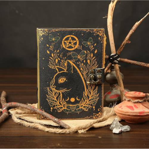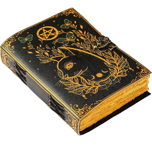 Cat Leather Grimoire Vintage Deckle Paper Wiccan Journal Notebook