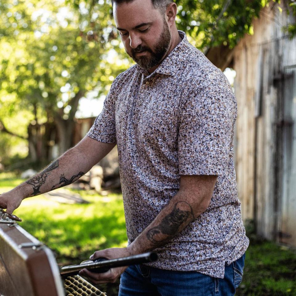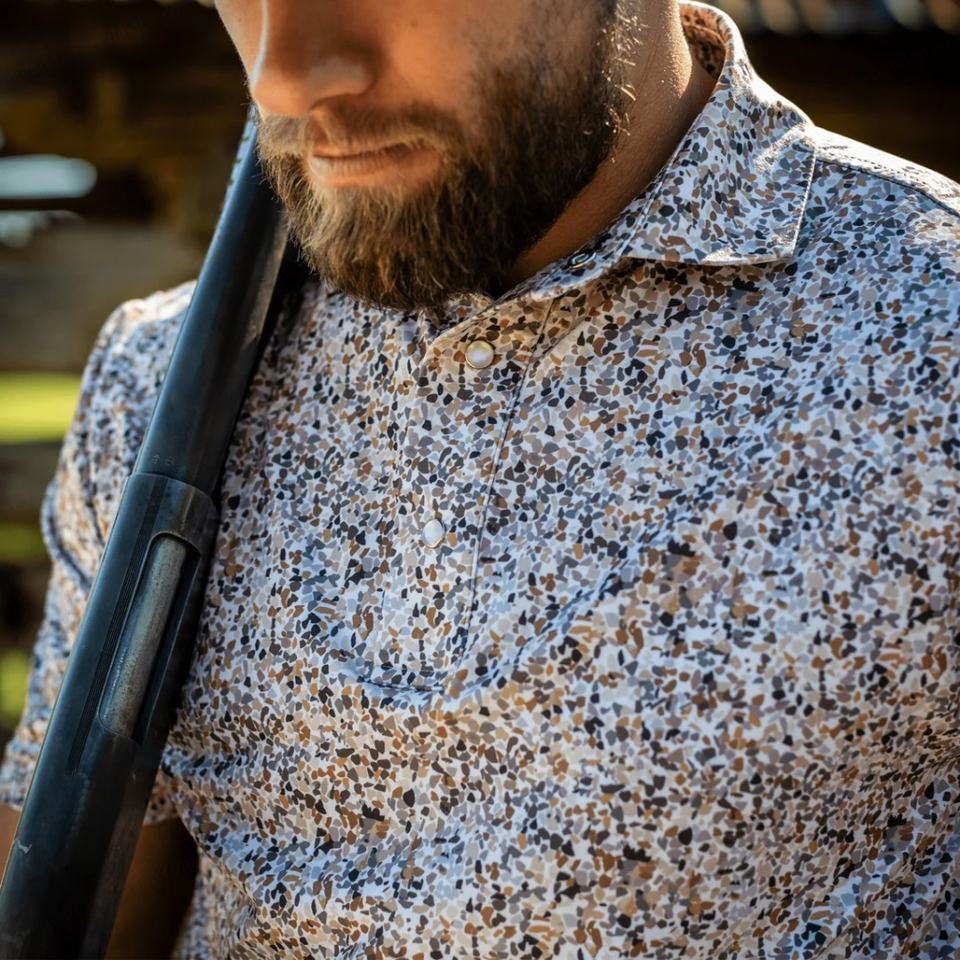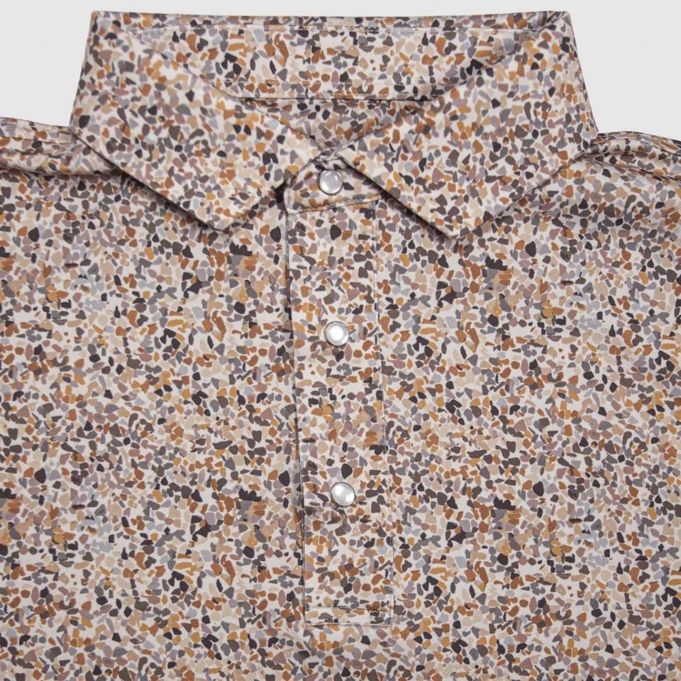 Camiseta de golf de poliéster Birdseye con estampado completo, protección UPF, cierre de perlas, diseño de sublimación, económica, para equipos, con estampado de sol.