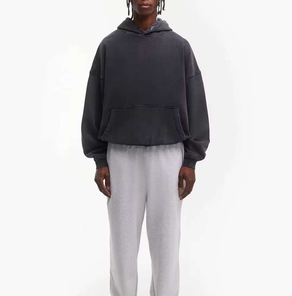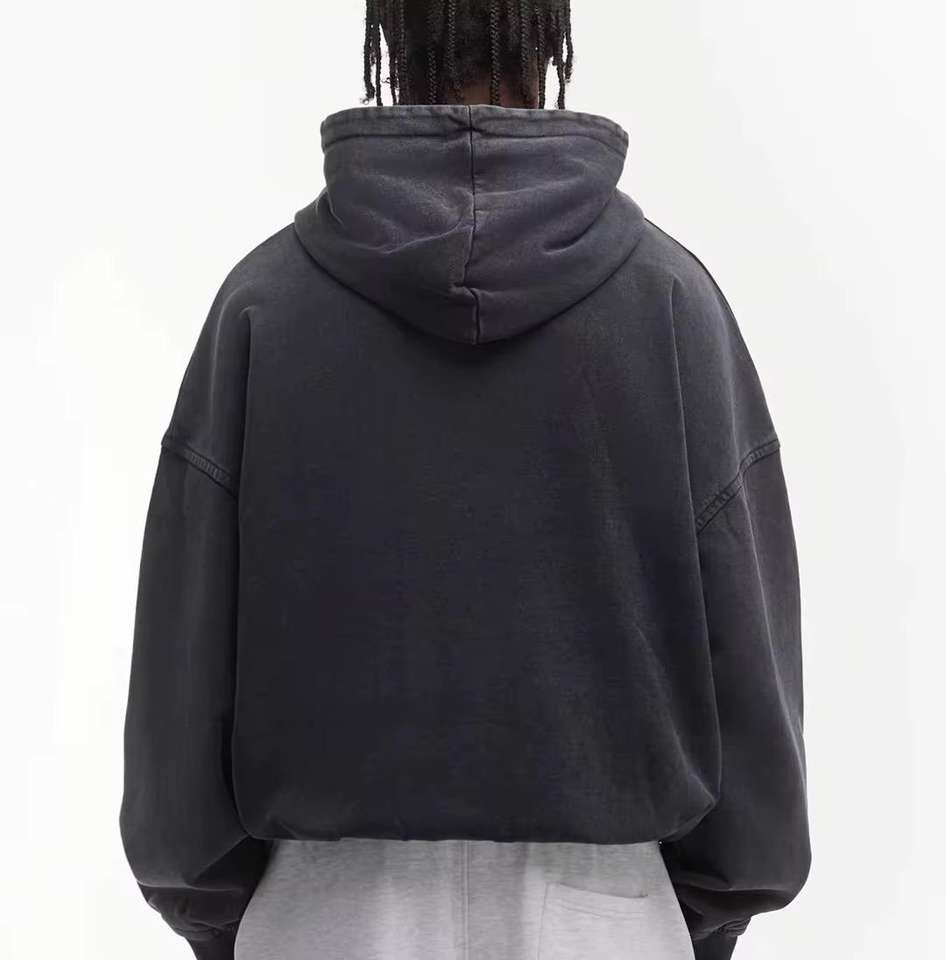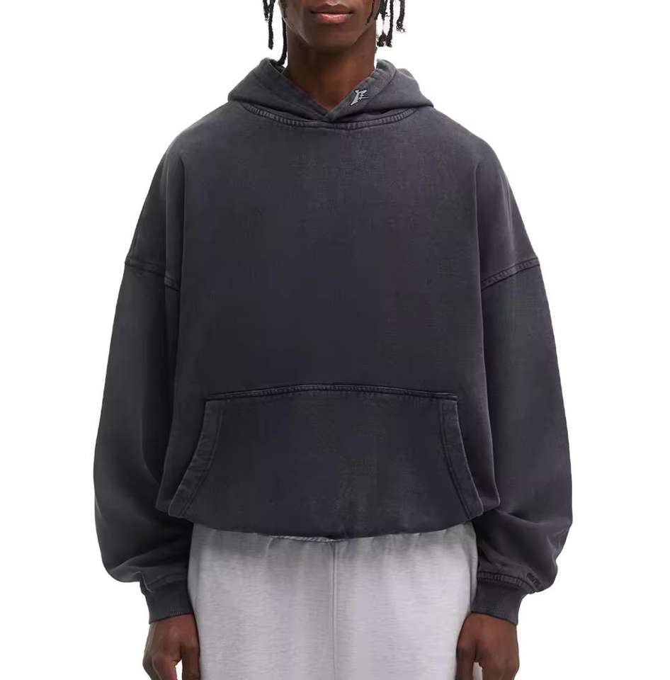 Sudadera con Capucha de Invierno para Hombre, Estilo Urbano, 100% Algodón, Gruesa, Holgada, Desgastada con Ácido, con Cremallera Personalizable