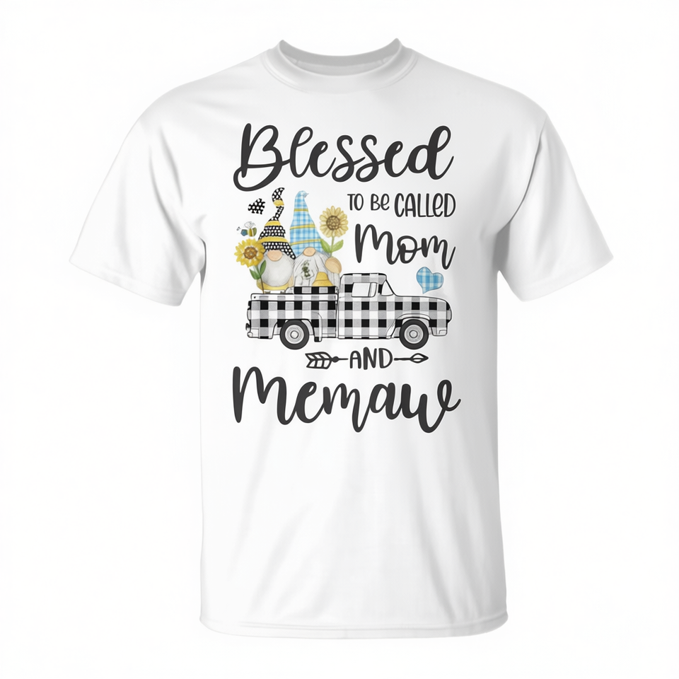 Camiseta con estampado digital de camión de gnomos y la frase "Blessed To Be Called Mom And Memaw", unisex, cuello redondo, manga corta, para adultos