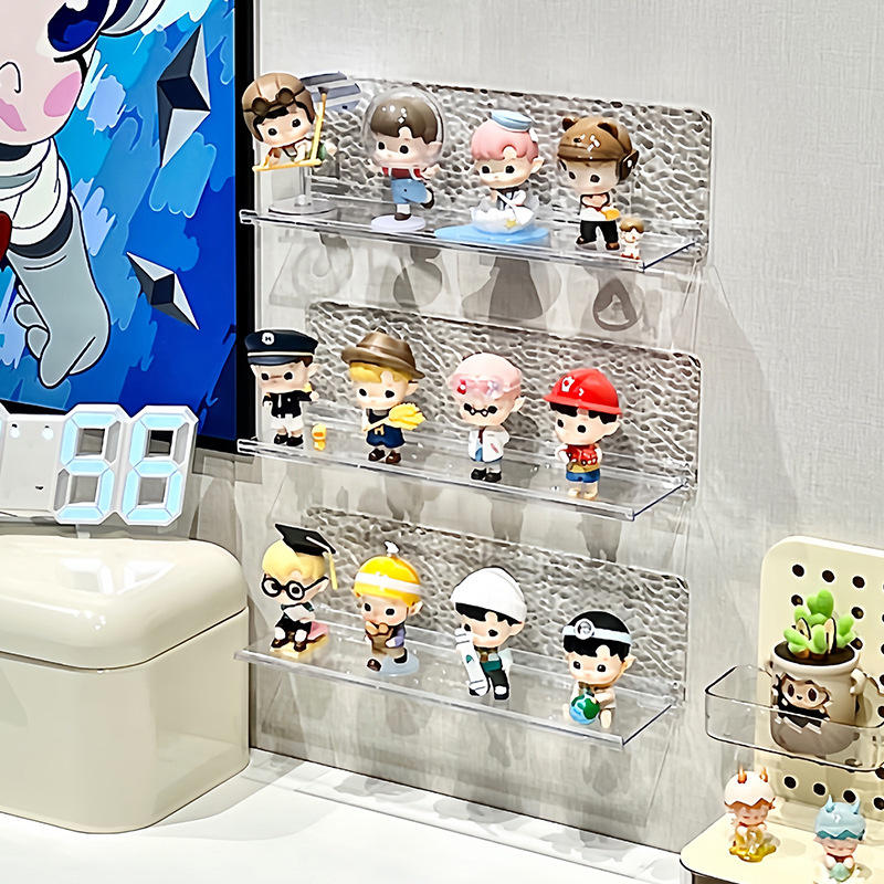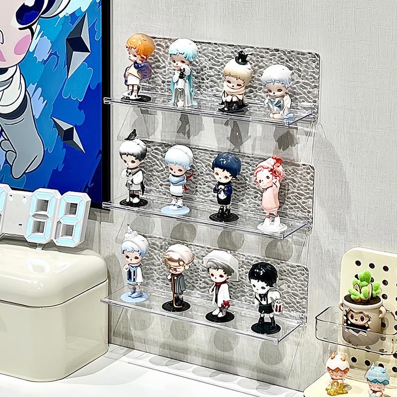 Estante de exhibición y almacenamiento para cajas sorpresa, caja de exhibición portátil para Bubble Mart, caja de almacenamiento de plástico transparente de 4 niveles, sin perforaciones, estilo coreano