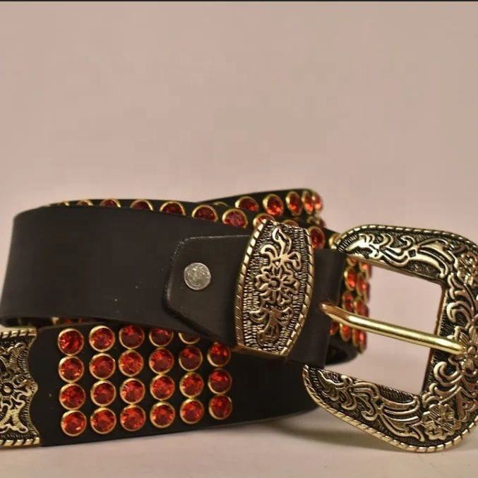 Cinturón de cuero de vaca de estilo occidental con diamantes de imitación ostentosos, Top, al por mayor fabricante indio, Rodeo internacional