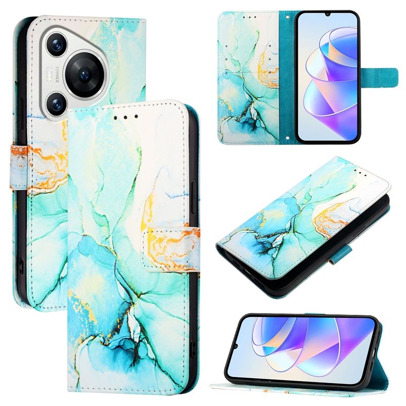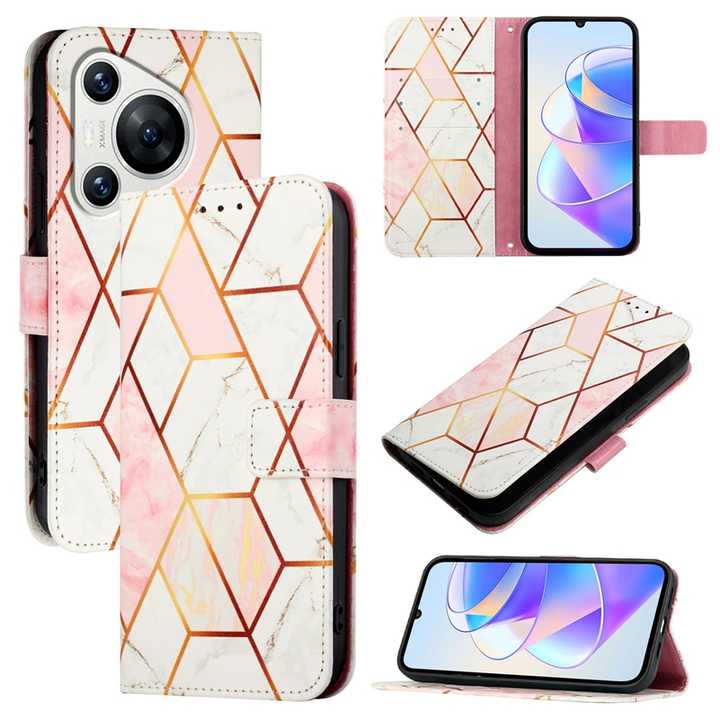 Funda de cuero con billetera de mármol ostentoso para Huawei Mate 70 Pura 7 Pro Nova 12i Honor 400 90 Smart 5G 200 Lite Play 50 Magic 5 Pro