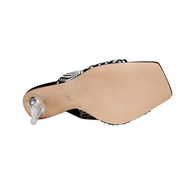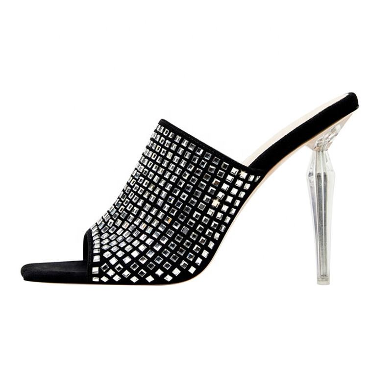 Sandalias de Novia con Pedrería Brillante, Tacón Alto Delgado de Cristal, Punta Abierta, Color Negro, Zapatos de Mujer, Talla Grande 46