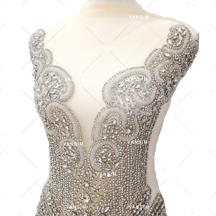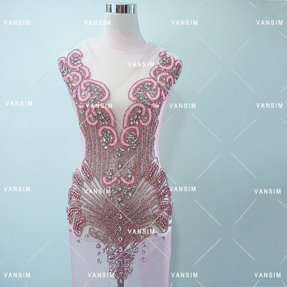 Aplique de Pedrería Brillante Plateado, Dorado y Rosa para Vestido, Ideal para Bodas, Fiestas, Desfiles de Moda, Carnavales y Disfraces de Baile
