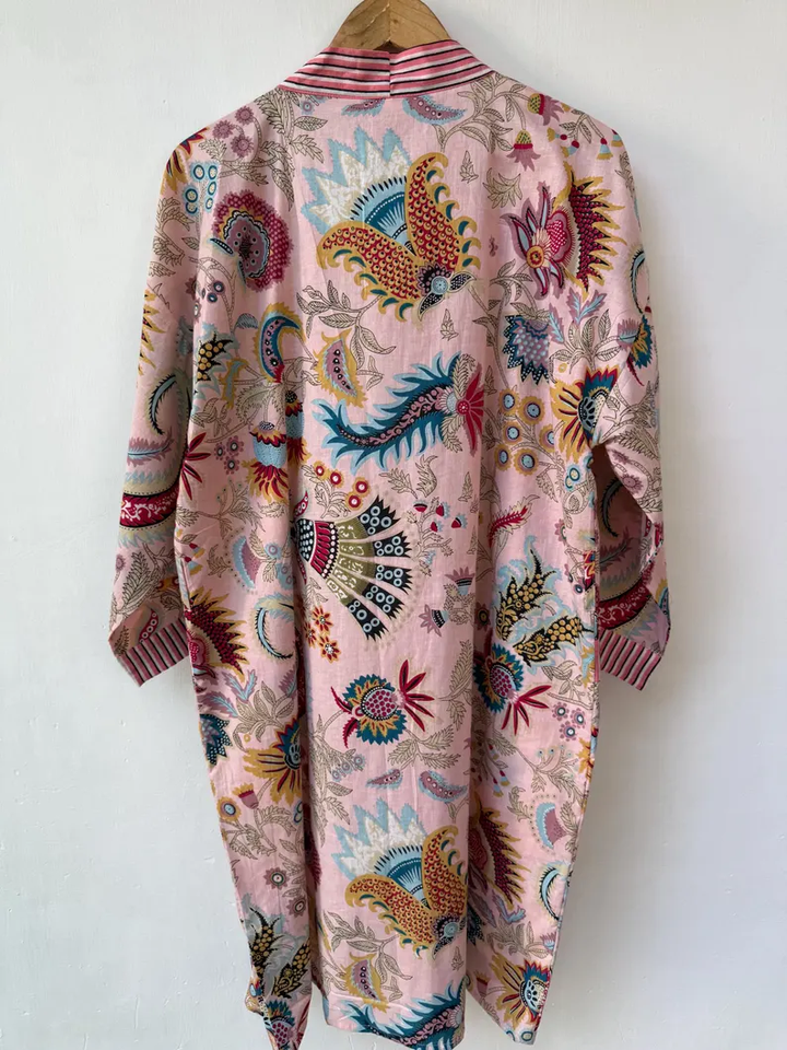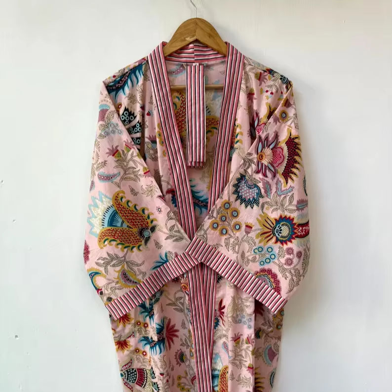 Bata Kimono con Estampado de Dibujos Animados para Mujer, Suave y Transpirable, de Algodón, para Verano, Hecha a Mano, ODM