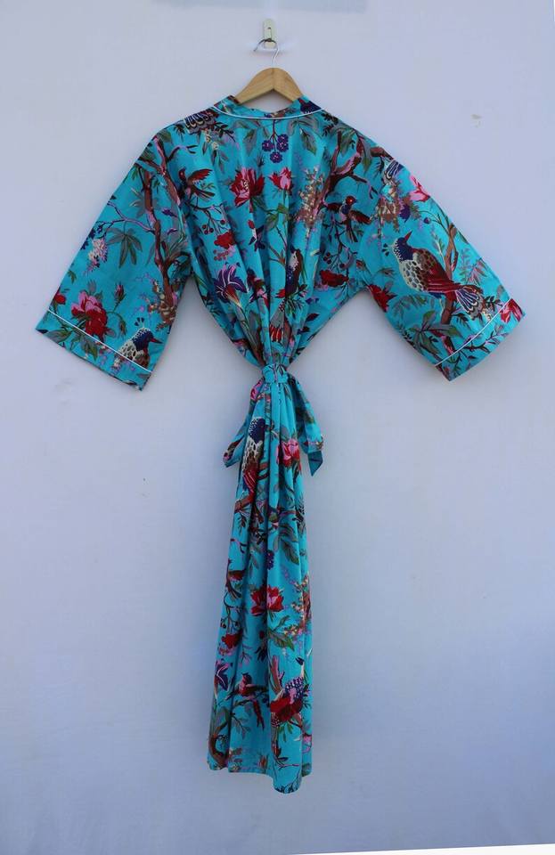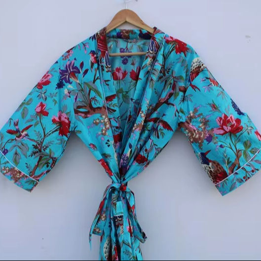 Bata Kimono con Estampado de Dibujos Animados para Mujer, de Algodón Suave y Transpirable, Camisón de Verano Hecho a Mano, ODM, Cuello en V, Cintura Elástica, Largo hasta la Rodilla
