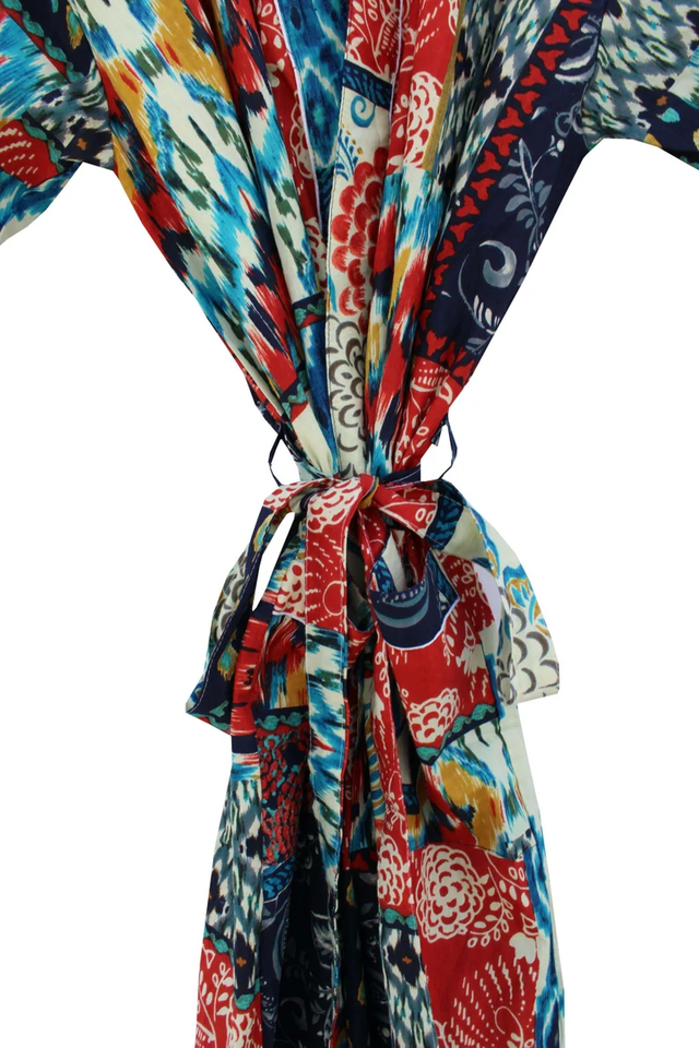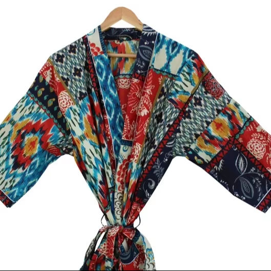Bata Kimono de Algodón Suave con Estampado de Dibujos Animados para Mujer, Camisón de Verano Hecho a Mano ODM con Cuello en V y Cintura Elástica de Longitud Completa