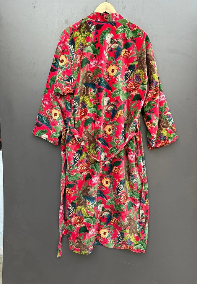 Bata Kimono con Estampado de Dibujos Animados para Mujer, Suave y Transpirable, 100% Algodón, Camisón de Verano Hecho a Mano, Cuello en V, Cintura Elástica, Largo Completo