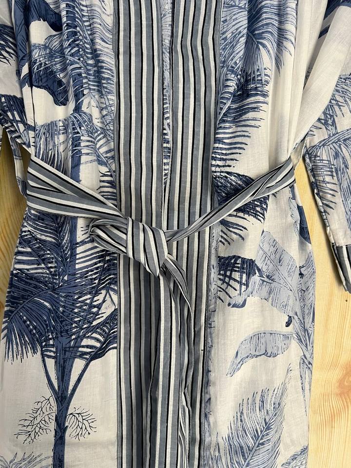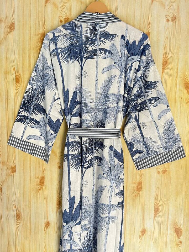 Bata Kimono con Estampado de Dibujos Animados para Mujer, 100% Algodón Tejido, Suave y Transpirable, Camisón de Verano Hecho a Mano, Cuello en V, Cintura Elástica, ODM