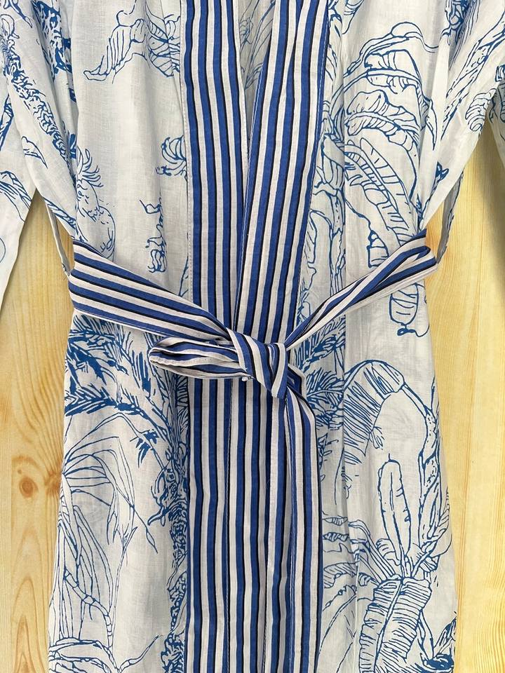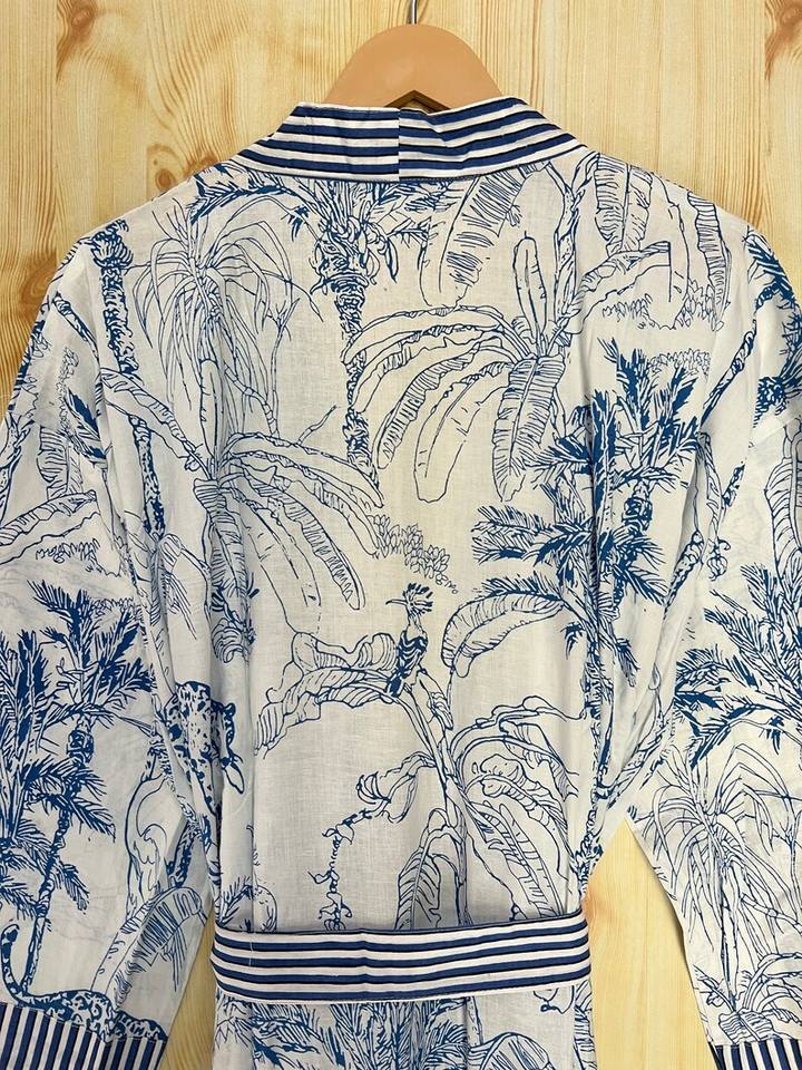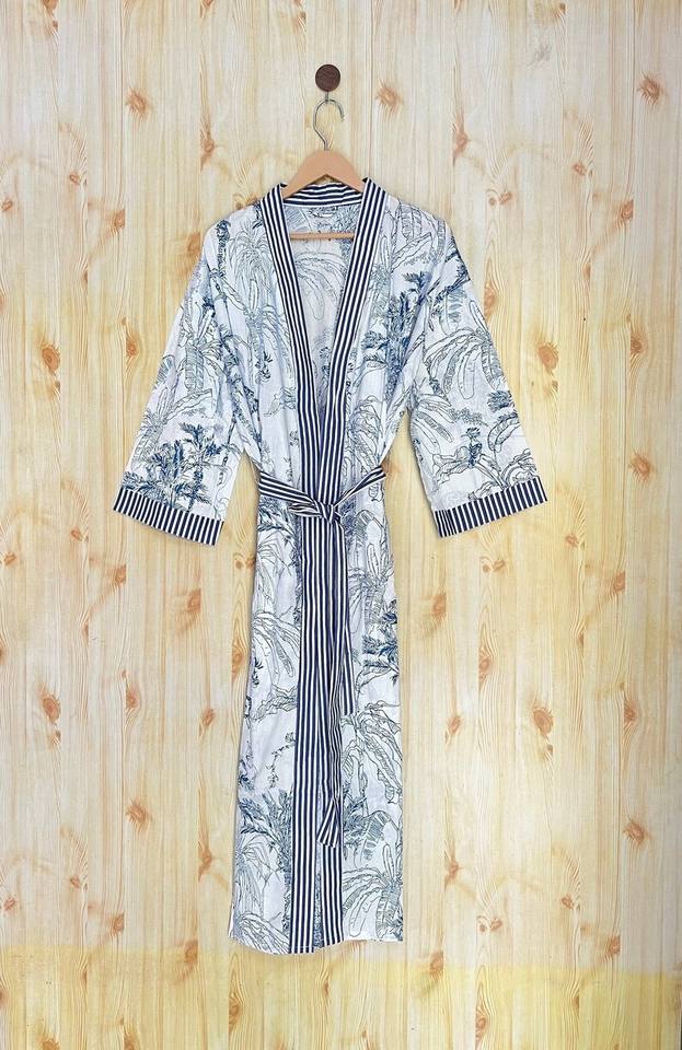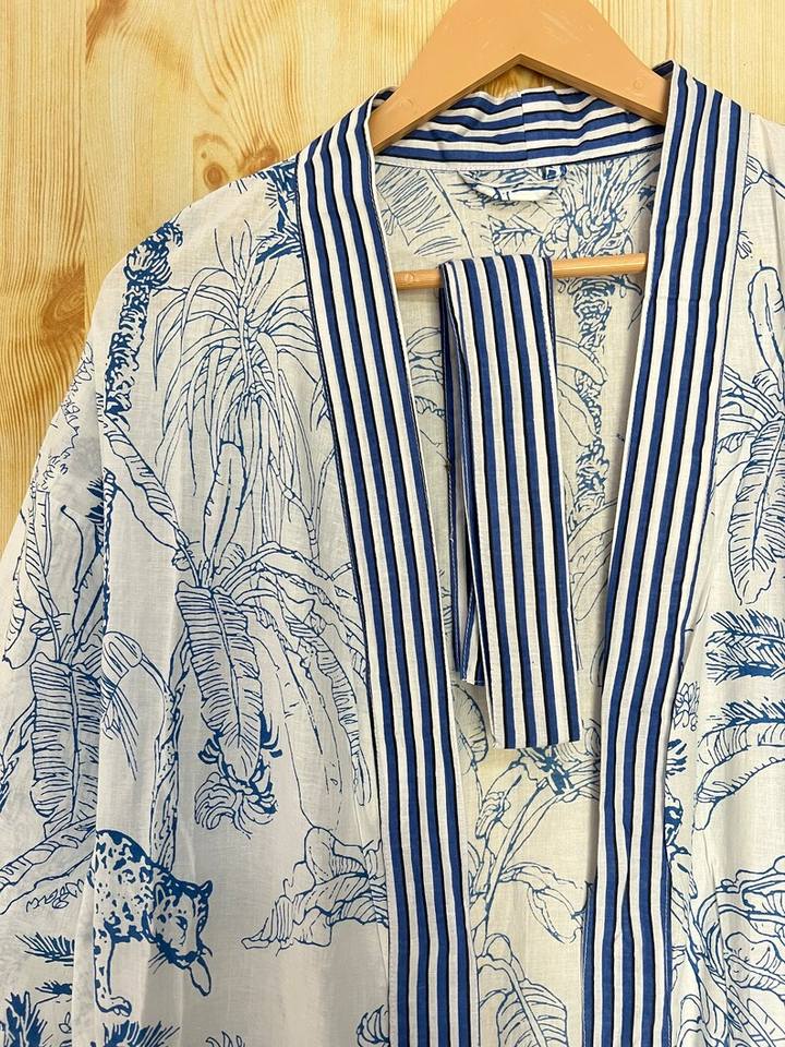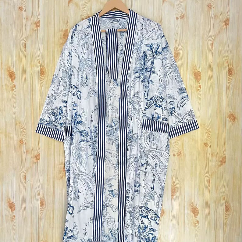 Bata Kimono de Algodón 100% Tejido con Estampado de Dibujos Animados para Mujer, Camisón de Verano Hecho a Mano, Cuello en V, Cintura Elástica, Largo Completo, Suave