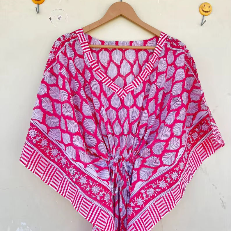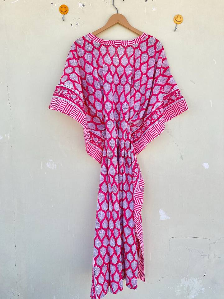 Bata Kimono de Algodón 100% con Estampado de Dibujos Animados para Mujer, Camisón de Verano Hecho a Mano, Cuello en V, Cintura Elástica, Largo Completo/Hasta la Rodilla, Suave