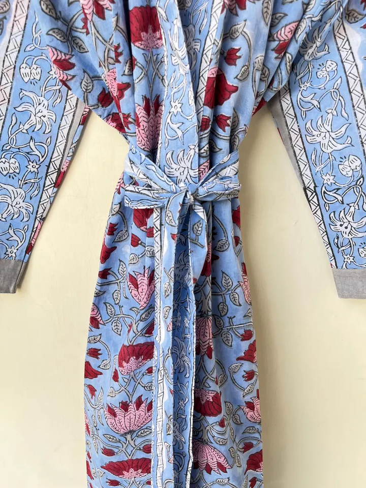Bata Kimono con Estampado de Dibujos Animados para Mujer, 100% Algodón, Camisón de Verano Hecho a Mano, Cuello en V, Cintura Elástica, Largo hasta la Rodilla