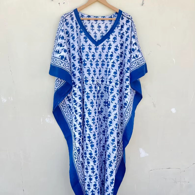 Bata Kimono de Algodón 100% para Mujer con Estampado Digital de Dibujos Animados, Camisón de Verano Hecho a Mano ODM con Cuello en V, Cintura Elástica y Largo hasta la Rodilla