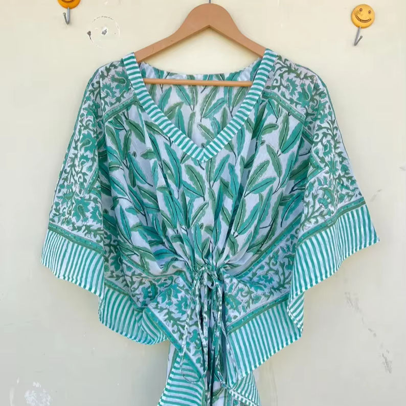 Bata Kimono de Algodón 100% con Estampado de Dibujos Animados para Mujer, Camisón de Verano Hecho a Mano, Cuello en V, Cintura Elástica, Largo Completo/Hasta la Rodilla, ODM, Temporada